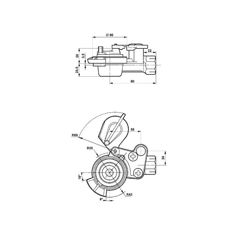 Ilgas aprašymasTaikymas: Motorinės transporto priemonės pneumatinei stabdžių sistemai sujungti su priekabos Savybės: Maks. darbinis slėgis: 8 barai Atitinka standartą: A DIN 74 294
