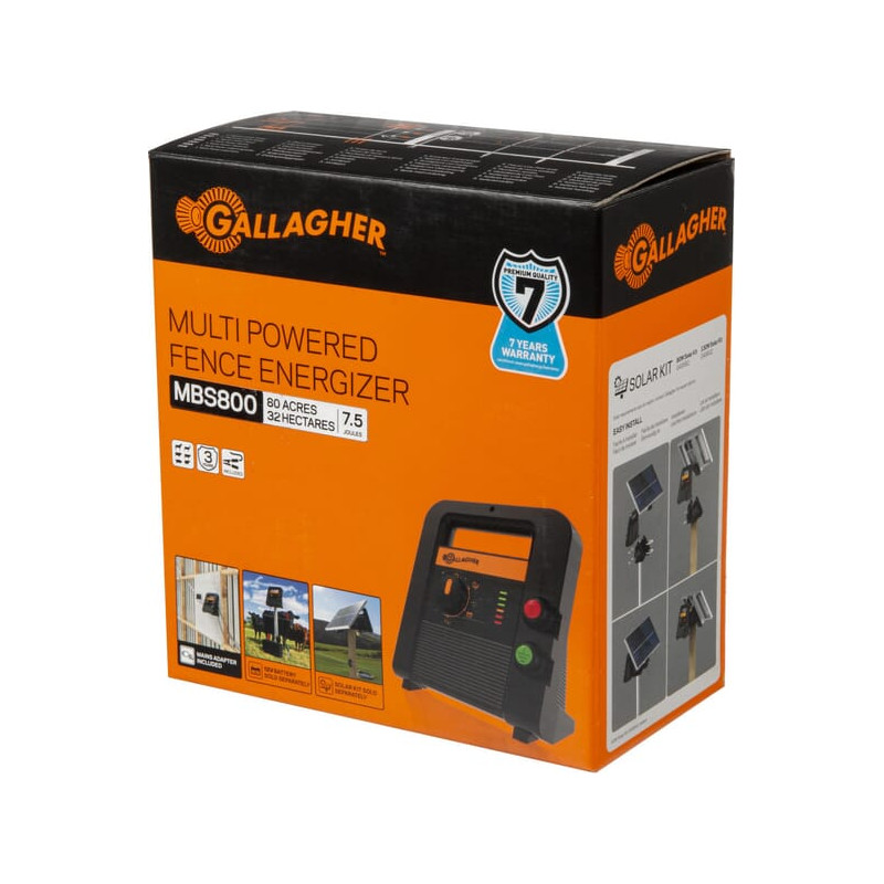 Išsami informacija apie gaminįMBS800 yra galingiausias 3 viename kelių galių elektros tvoros generatorius. Šis prietaisas gali būti naudojamas tiek su 230V, tiek su 12V baterija arba kartu su saulės kolektoriumi. Norimą naudoti formą galima lengvai pasirinkti su kelių padėčių sukamąja rankenėle. Jis tinka tvorai iki 40 km ir turi akumuliatoriaus valdymo lemputę. MBS800 yra su jungčių rinkiniu ir maitinimo adapteriu. Šiam elektros tvoros generatoriui naudokite 4 x 2 metrų įžeminimo kuolą.