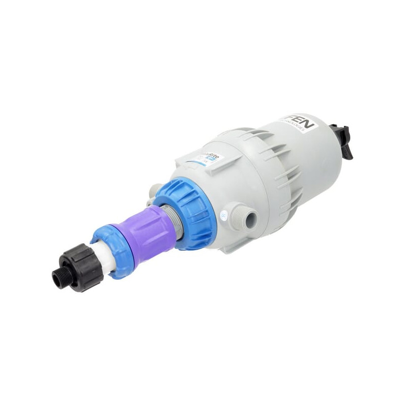 Ilgas aprašymas MixRite dozatorius yra patogus naudoti prietaisas, skirtas lengvai montuoti ir prižiūrėti vandens sistemoje, nereikalaujantis išorinio maitinimo šaltinio. Jis veikia naudojant vandens srauto varomą stūmoklį, kuris leidžia tiksliai ir proporcingai dozuoti medžiagas, kartu užtikrinant kruopštų sumaišymą su vandeniu. Dėl savo universalumo siurblys tinka įvairiems tikslams, įskaitant kiaulių, paukščių ir galvijų auginimą, sodininkystę ir transporto priemonių plovimą. Jo paprasta, efektyvi konstrukcija užtikrina aukštą našumą ir leidžia greitai ir lengvai pakeisti sandariklį be specialių įrankių. Rodyti daugiau