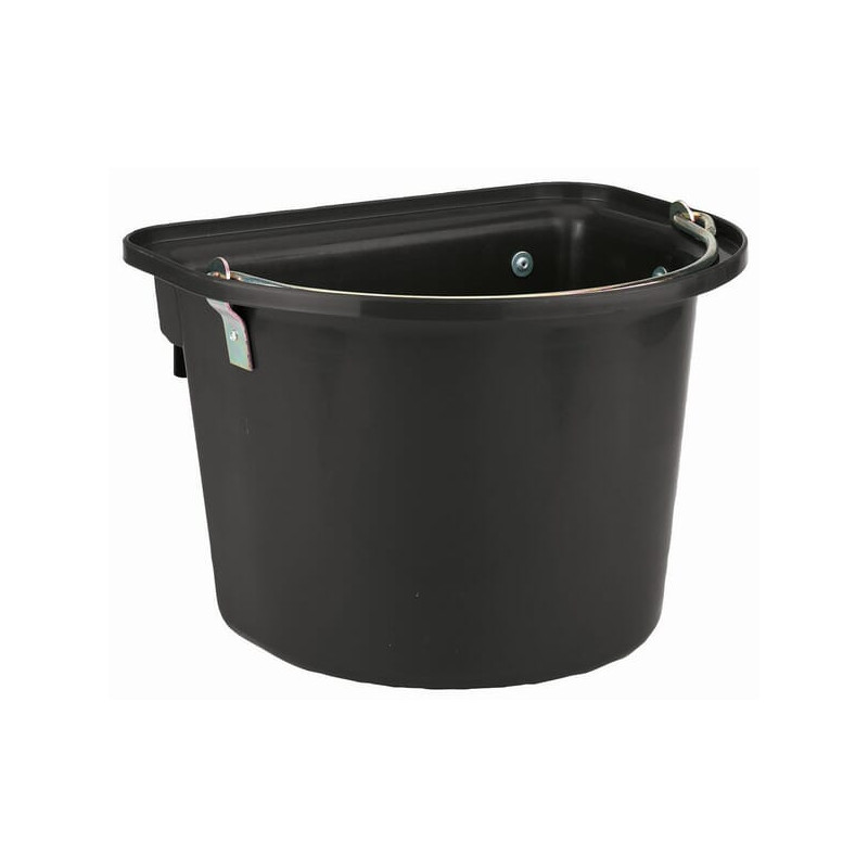 Techninės informacijos turinys 12 litrų tvirto plastiko su metaliniu užtrauktuku, skirtu pakabinti arklio priekaboje arba arklio garduose papildoma metaline rankena