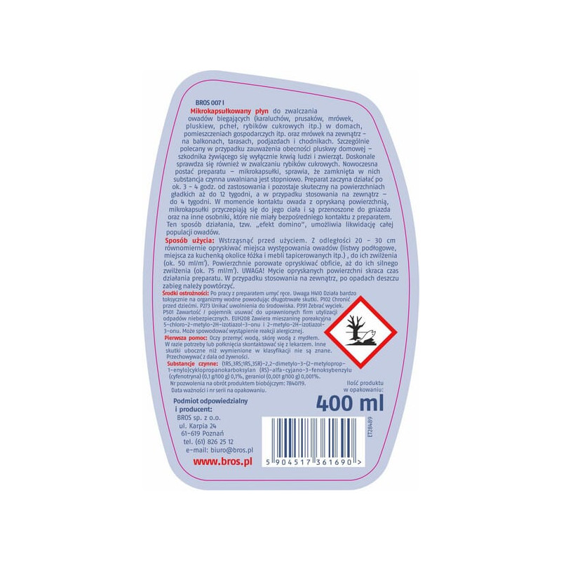 007 mikrokapsuliuotas blakių ir sidabrinių žuvelių vabzdžių purškiklis, 400 ml 15941999