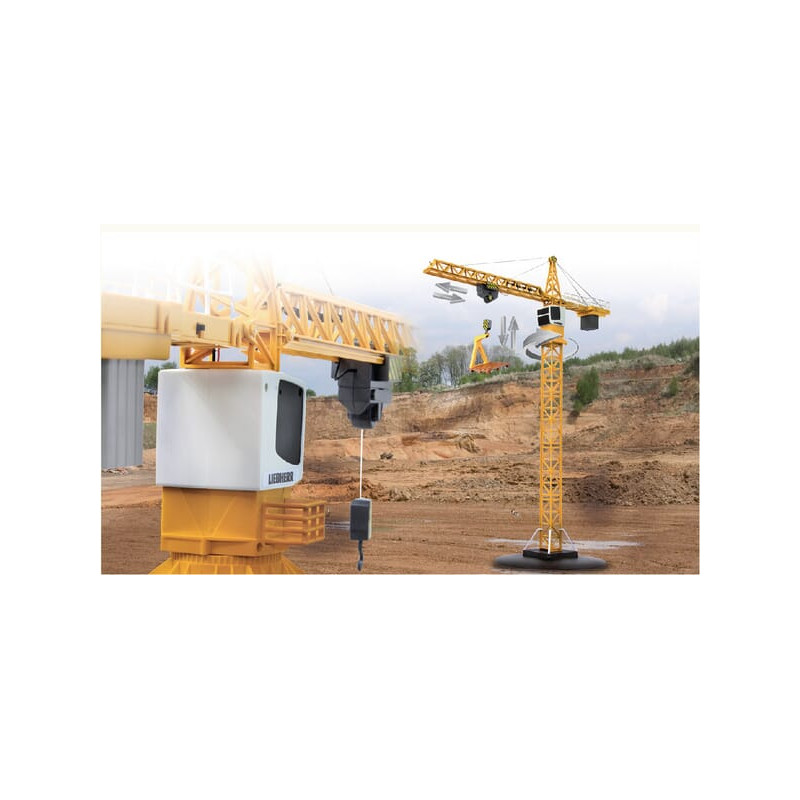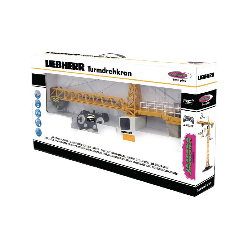 Techninė informacija Svarbiausi akcentai: • 2,4 GHz kelių žaidėjų veikimui • Krovinio kablys aukštyn ir žemyn • Vežimėlis pirmyn ir atgal • Begalinis bokštelio sukimas pagal laikrodžio rodyklę ir prieš laikrodžio rodyklę Dėžutės turinys: • Modelis • Siųstuvas 2,4 GHz • Padėklo šakutė su padėklu • Instrukcija Rekomenduojami priedai: • Siųstuvas: 1, 5 xA 1,5 V akumuliatoriai • Įkroviklis „Charge Cell“ įsk. 6 x NiMh 1,2 V 2700 mAh