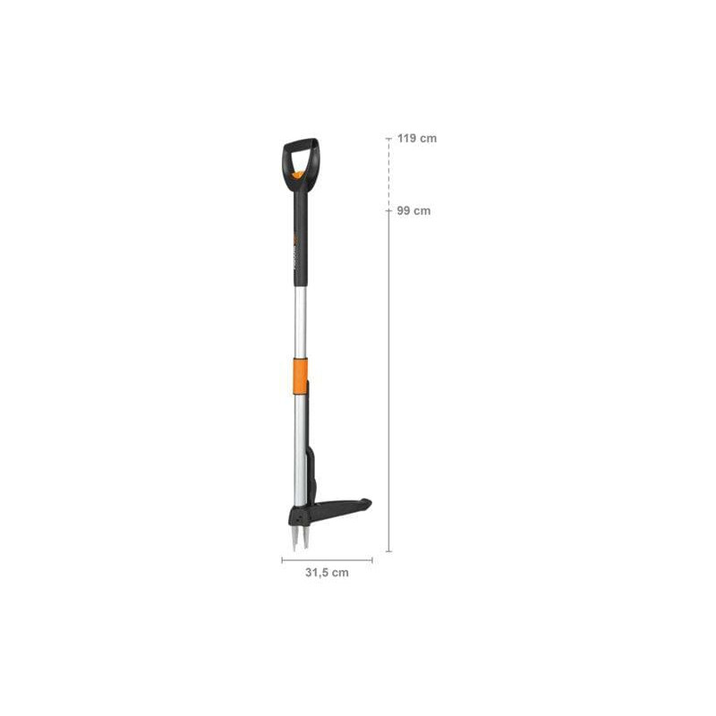 Dalies numeris 1020125 EAN6411501399601 Vienetas/Kiekvienas Prekės ženklas „Fiskars“ Ilgas aprašymas „Fiskars“ teleskopinis piktžolių raviklis W82 yra išmanus sprendimas vejai ravėti, nes jis greitai ir lengvai pašalina piktžoles mechaniškai, nenaudojant kenksmingų pesticidų. Įrankis veikia su keturiais giliai siekiančiais nerūdijančio plieno žnyplėmis, kurios efektyviai sugriebia pagrindinę šaknį. Išrovus piktžoles, išmetimo sistema padeda jas išmesti tiesiai į laukiantį karutį ir nuimti nuo vejos. Geriausia tai, kad ši ekologiška ravėjimo sistema leidžia sodininkui dirbti vertikalioje padėtyje, kad būtų išvengta raumenų įtampos ir nugaros skausmo. Teleskopinę rankeną galima reguliuoti iki 1190 mm, todėl ji tinka tiek aukštesniems, tiek žemesniems sodininkams. Bendras plotis 300 mm Bendras ilgis 1190 mm Svoris 1,25 kg