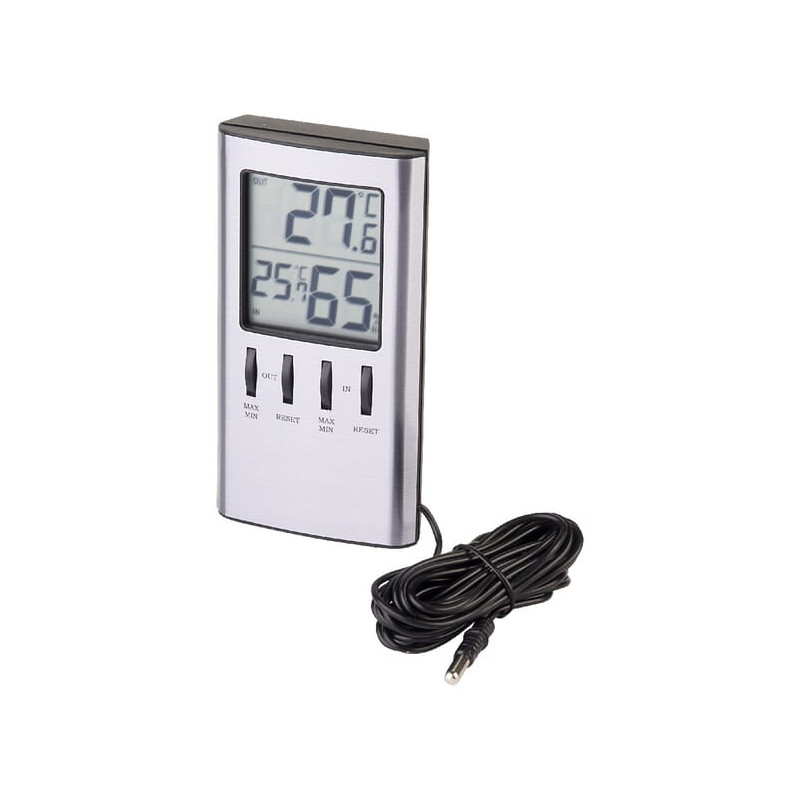 Dalies numeris1740581010 EAN7316040009129 Vnt./vnt. Prekės ženklasBe prekės ženklo Išsamus aprašymas Įrenginys su dviem elektroniniais ekranais Termometras/higrometras Su 2 skaitmeniniais ekranais. Matuoja patalpų ir lauko temperatūrą bei patalpų drėgmę. Maks./min. atmintis. Galima tvirtinti prie sienos arba pastatyti ant stalo naudojant sulankstomą stalo stovą. Į komplektą įeina baterijos. Įtampa 1,5 V Minimali darbinė temperatūra –10 °C Maksimali darbinė temperatūra 50 °C