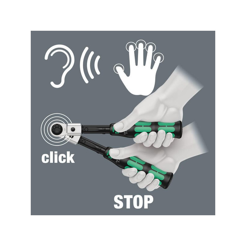 Produkto informacija: Sukimui pagal ir prieš laikrodžio rodyklę; Su lizdu keičiamiems 9x12 mm įdėklams; Garsinis ir lytėjimo mechanizmas, kai pasiekiamas nustatytas sukimo momentas; Ergonomiška 2 komponentų rankena;