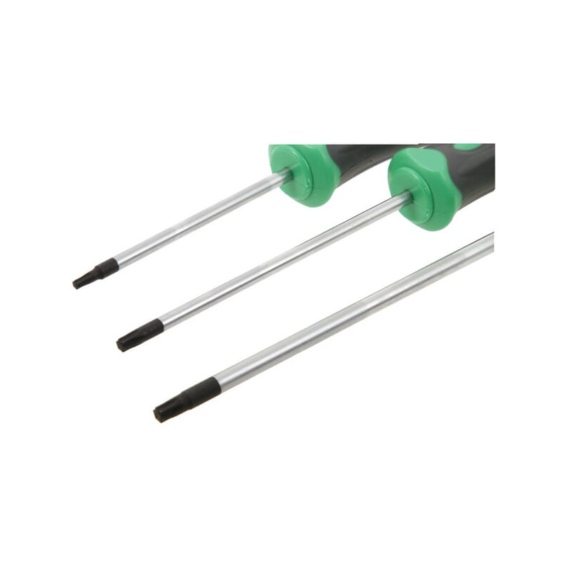 Produkto informacijaPagaminta iš chromo molibdeno plieno, termiškai apdoroto satino apdailaAšmenų galas yra apdorotas mangano fosfato vonelėje, kad būtų užtikrinta puiki apsauga nuo korozijosPuikus sujungimas tarp rankenos ir ašmenų, kad būtų užtikrintas optimalus jėgos perdavimasTipas aiškiai nurodytas ant rankenosRankena su apsauga nuo riedėjimoKomplektą sudaro:TX10 x 75 mmTX20 x 100 mmTX25 x 125 mmTX30 x 150 mmTX40 x 150 mm