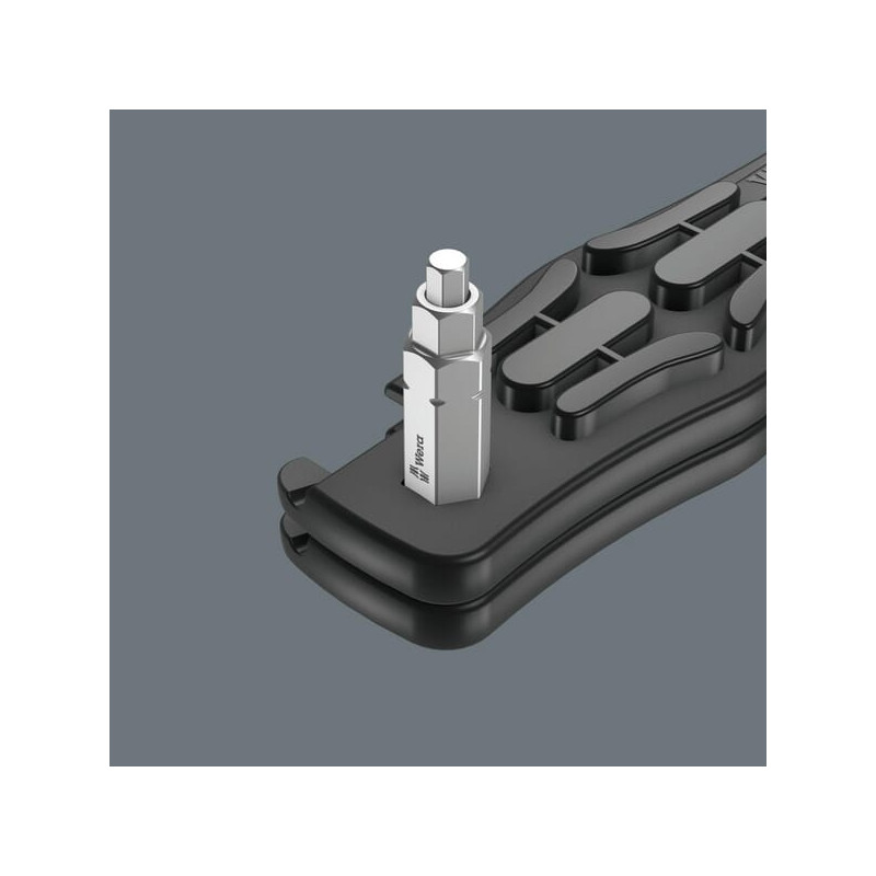 Produkto informacijaAntgalis turi 1/4 colio šešiakampę pavarą („Wera“ jungties serija 1), todėl jį taip pat galima naudoti, pavyzdžiui, antgalių reketuose ir antgalių laikikliuose su „Rapidaptor“Pradų kėlimo mechanizme 9504 yra 1/4 colio laikiklis 1/4 colio antgaliuiJei abu 9504 padangų kėlimo mechanizmai užstumti vienas ant kito, 4 viename antgalį galima naudoti kaip varžtų sukimo įrankiusPradų kėlimo mechanizme 9505 taip pat naudojamas kaip ventilio išmetiklis ir nuorintuvasPradų kėlimo mechanizmą ir 4 viename antgalius galima suglausti kartu, kad būtų galima juos kompaktiškai laikytiSukant, nuolat spauskite prieš spyruoklės jėgą, kad mažesnis profilis įgrimztų, kad tilptų didesnis profilis 4 viename antgaliai 9506 tinka keturių dydžių išoriniams šešiakampiams varžtams (3, 4, 5, 6). 4 viename antgaliai 9507 skirti trijų dydžių išoriniams šešiakampiams varžtams (2,5, 5, 6) ir vieno dydžio TORX® varžtams (TX 25).