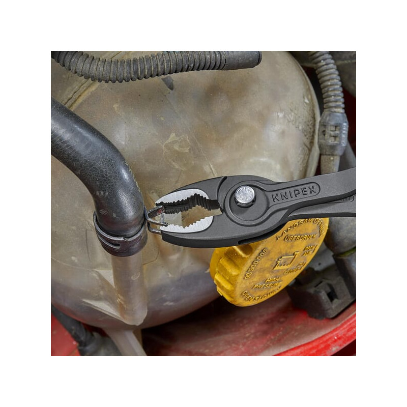Dalies numerisTA8202200 EAN4003773087250 Vnt./vnt. GamintojasKnipex Išsamus aprašymasKnipex TwinGrip replės su priekine ir šonine sukibimo funkcija – universalus ginklas nuo įstrigusių daiktų, tokių kaip varžtai ir sraigtai. PrivalumaiUnikalus derinys: priekinė ir šoninė sukibimo funkcija, įstūmimo jungtis, reguliavimas mygtuku Labai plonos replės: taip pat tinka ankštose surinkimo vietose, nes siauras sukimo skersmuo veržiant Tvirti priekiniai žandikauliai su tvirtais dantimis ir dideliu santykio koeficientu žandikaulių gale