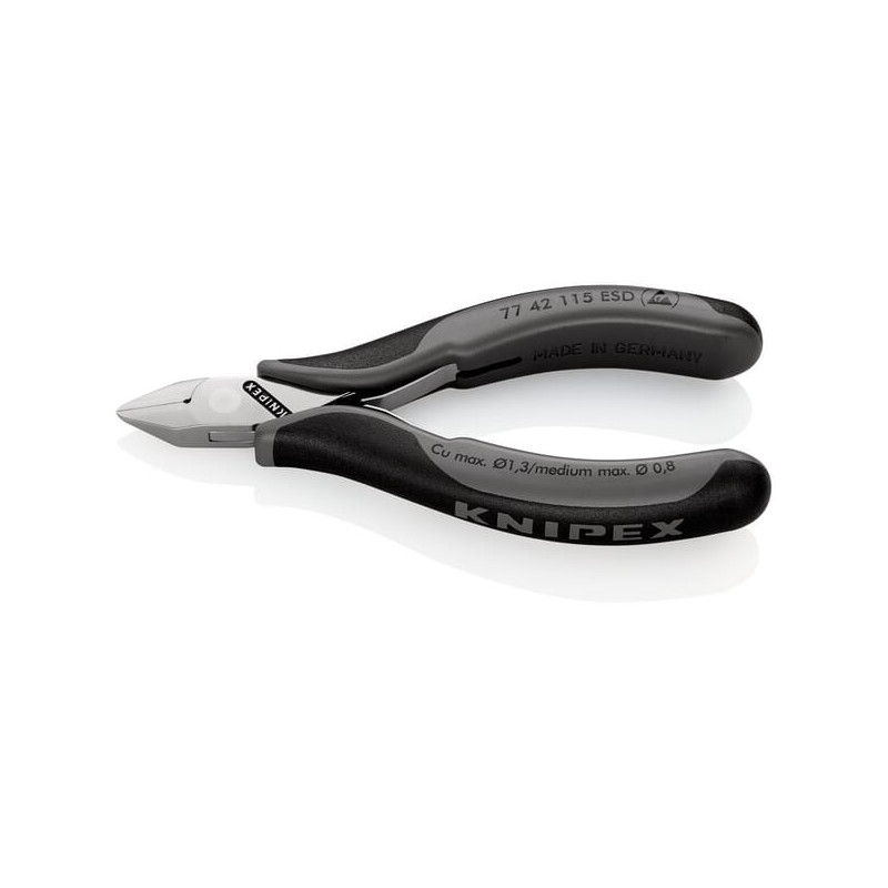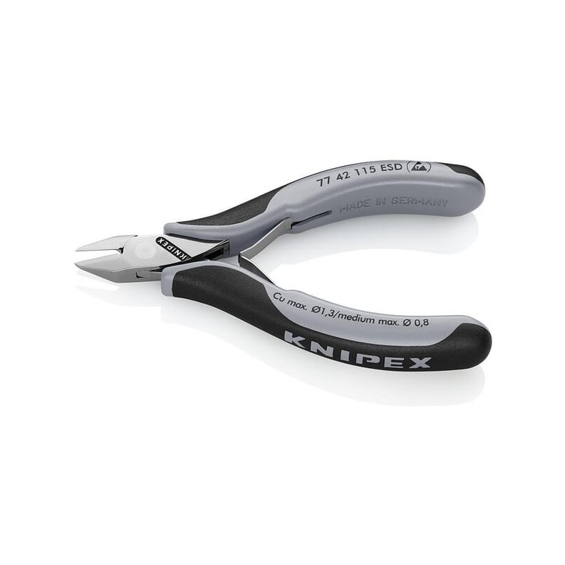 Dalies numerisTA7742115ESD EAN4003773031901 Vnt.Kiekvienas GamintojasKnipex Ilgis 115 mm Žandikaulių ilgis 14 mm Žandikaulių plotis 7 mm Maks. pjovimo storis 1,3 mm Izoliuota Ne Izoliacijos apsauga 1000 V Ne ESD patikrinta Taip VDE patikrinta Ne Rankenos medžiaga Daugiakomponentė Medžiaga Įrankiams skirtas plienas Kaltinis plienas Grūdintas plienas DIN standartas 61 340-5 9654 Svoris 70 g