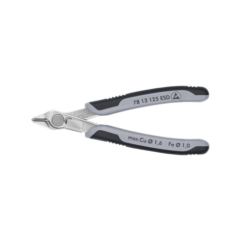 Dalies numeris TA7813125ESD EAN4003773025153 Vnt./kiekis Gamintojas Knipex Ilgis 125 mm Žandikaulių ilgis 9 mm Žandikaulių plotis 7,5 mm Maks. pjovimo storis 1,6 mm Izoliacijos apsauga 1000 V Nr. DIN standartas 61 340-5 9654 Svoris 57 g