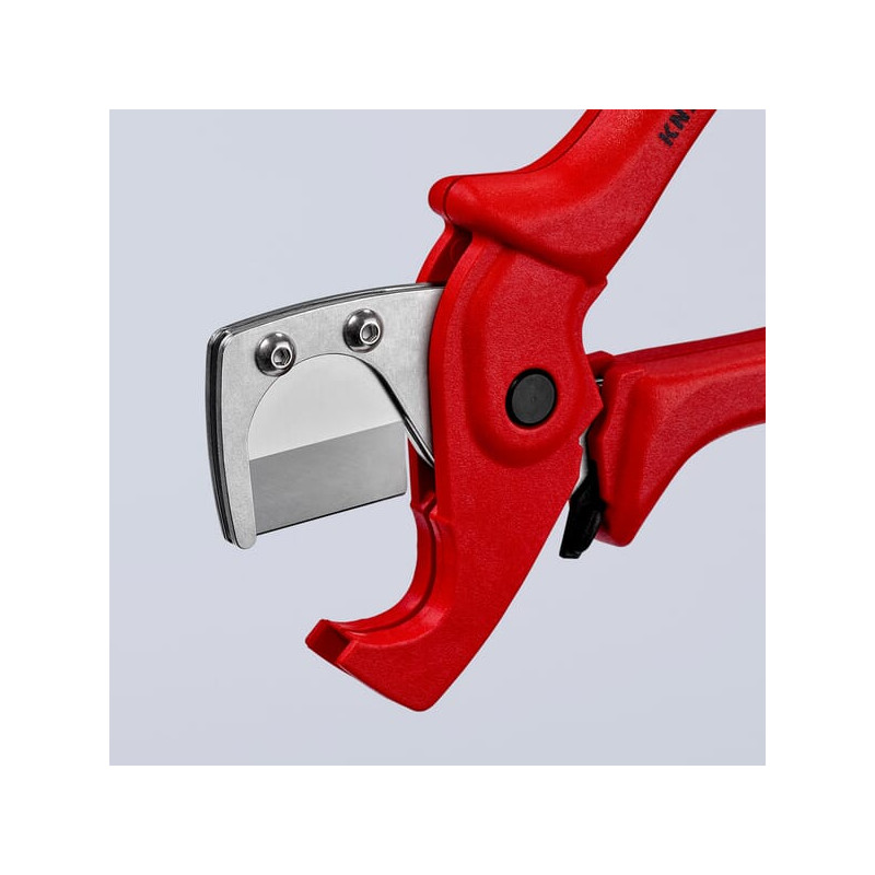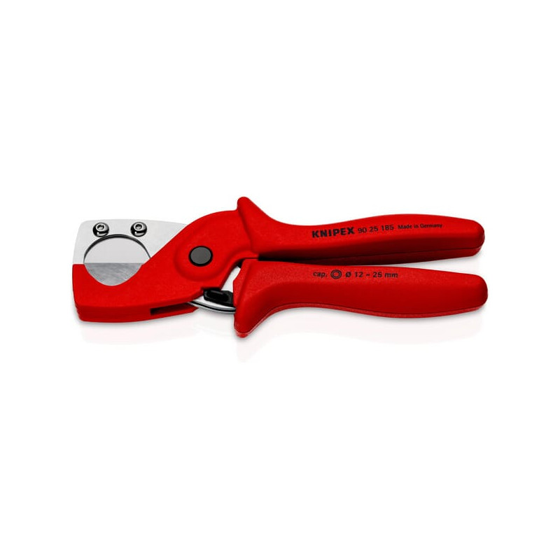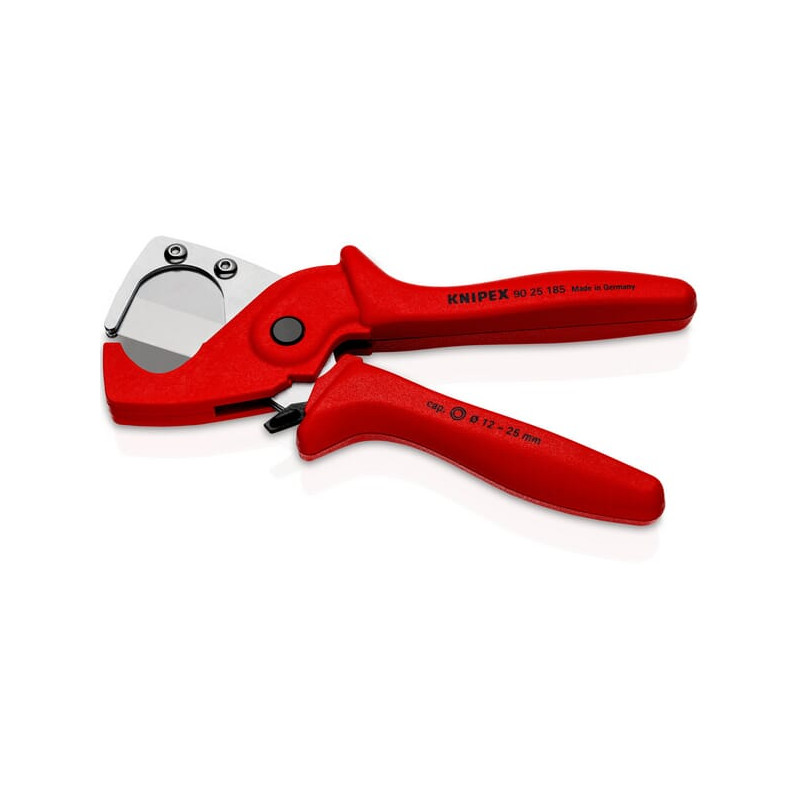 Dalies numerisTA9025185 EAN4003773084839 VienetasKiekvienas GamintojasKnipex Išsamus aprašymas Šis Knipex vamzdžių pjaustytuvas nepaprastai tiksliai pjauna vamzdžius, pagamintus iš aliuminio kompozito ir plastiko. Privalumai: Švarūs, lygūs ir be šerpetojančių ašmenų pjovimo kraštai; Su atidarymo spyruokle ir fiksatoriumi; Lengvai keičiami ašmenys. Produkto informacija: Pjaustyti Ø 12–25 mm kompozitinius vamzdžius; Ergonomiškos formos rankenos, pagamintos iš stiklo pluoštu armuoto plastiko; Netinka kabeliams pjauti; Ašmenys pagaminti iš didelio stiprumo specialaus plieno, grūdinto alyvoje ir atleisto. Min. vamzdžio skersmuo 12 mm Maks. vamzdžio skersmuo 25 mm