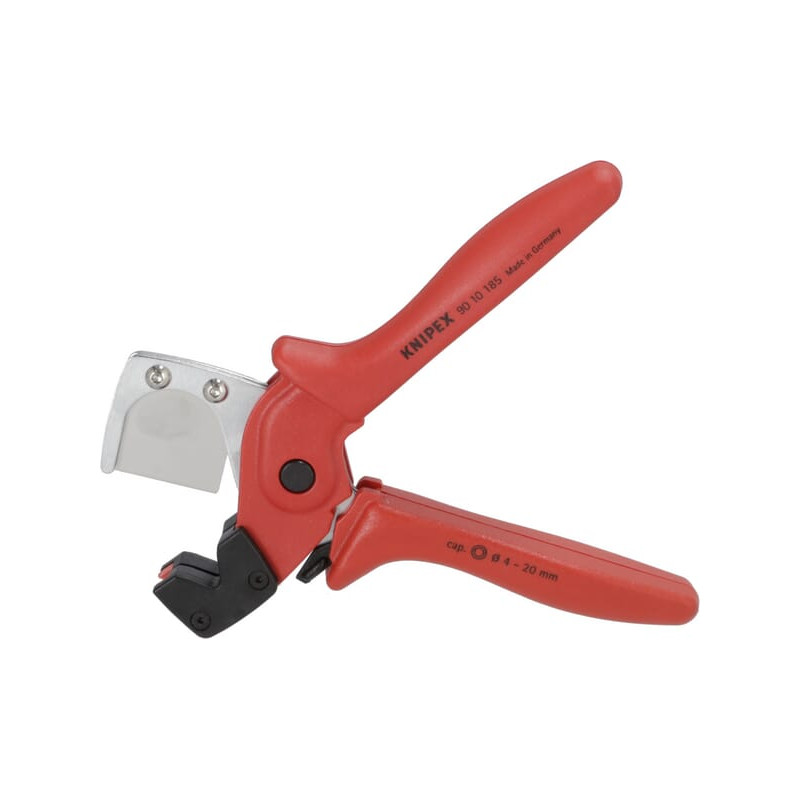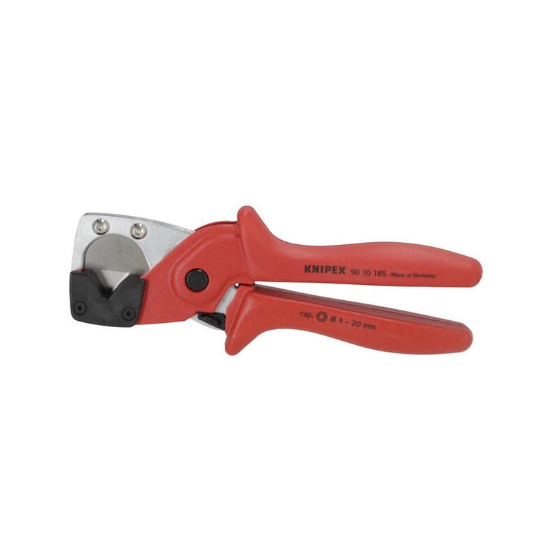 Dalies numerisTA9010185 EAN4003773084846 VienetasKiekvienas GamintojasKnipex Išsamus aprašymasKnipex vamzdžių pjaustytuvas, idealiai tinka visoms įprastoms skysčių, daugiasluoksnėms ir pneumatinėms žarnoms. Dėl ergonomiškų rankenų, lanksčios vyrio ir atidarymo spyruoklės lanksčius vamzdžius arba pneumatines žarnas galima pjauti labai lengvai.