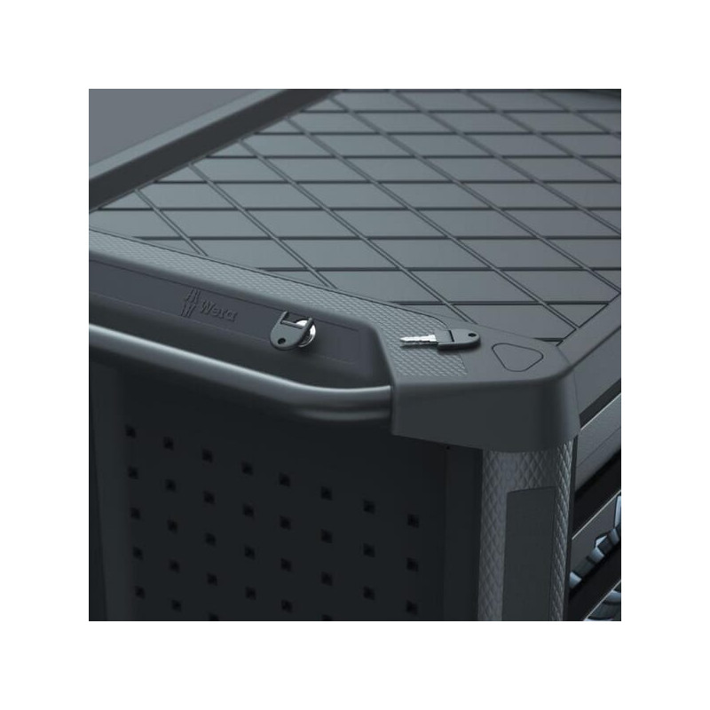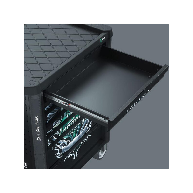 Dalies numeris05150130001 EAN4013288225085 Vnt./vnt. Prekės ženklasWera Išsamus aprašymas. „Wera 9700 Tool Rebel“ dirbtuvių vežimėlis 1 – išskirtinis dirbtuvių vežimėlis su „Tool Rebel“ dizainu. Ypač tvirta konstrukcija su dvigubomis sienelėmis ir visiškai suvirinta spintelės konstrukcija, skirta intensyviam kasdieniam naudojimui dirbtuvėse. PrivalumaiAukštos kokybės, patvarūs putplasčio įdėklai, kurie neišskiria cheminių garųOptimalus prigludimas užtikrina lengvą įrankių išėmimą iš putplasčio įdėklųStalčiai gali atsidaryti 100 % su rutuliniais guoliais aprūpintais teleskopiniais švelniai užsidarančiais bėgeliaisMinimali apvirtimo rizika dėl ištraukiamo užrakto, galima atidaryti tik vieną stalčių, o ne kelis vienu metu_x000D_