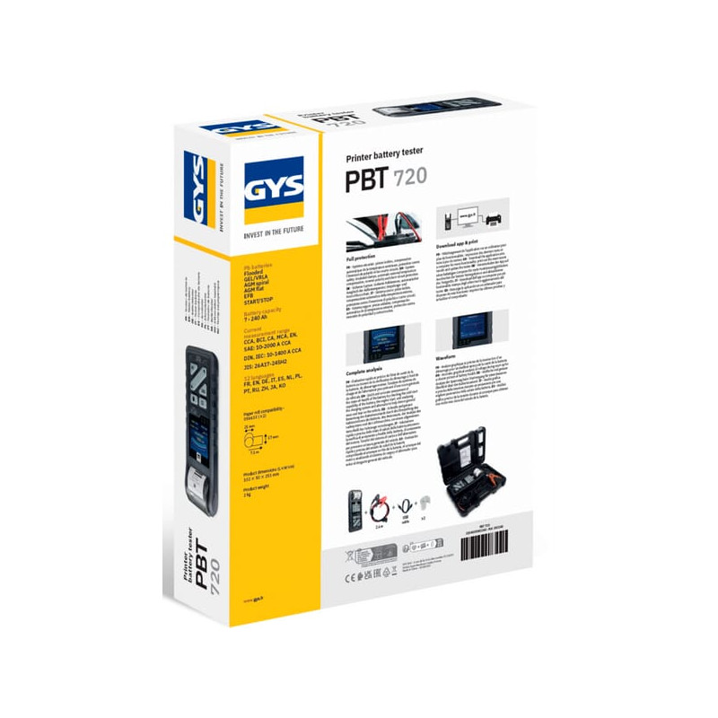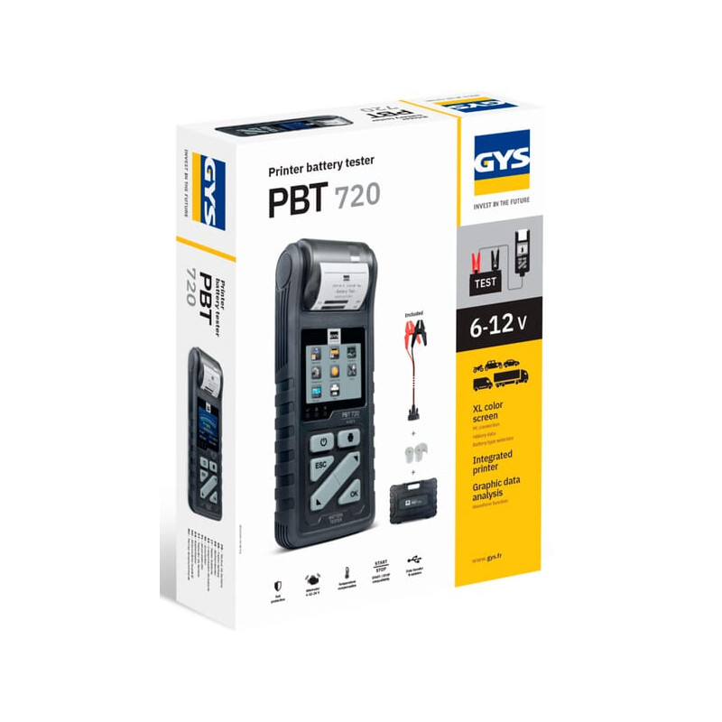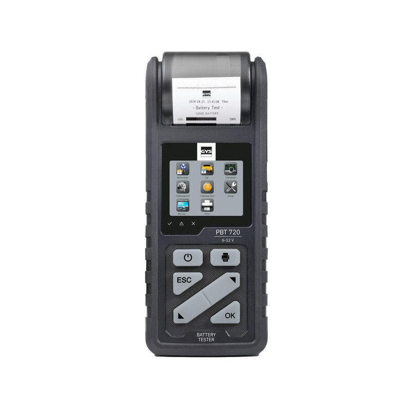 Dalies numeris083240GYS EAN3154020083240 VienetasKiekvienas GamintojasGys Ilgas aprašymas PBT 720 yra tikslus profesionalus akumuliatorių testeris su įmontuotu terminiu spausdintuvu. Jis gali įvertinti akumuliatoriaus įtampą, paleidimo galią ir generatoriaus veikimą, todėl idealiai tinka daugumai švino rūgšties akumuliatorių testuoti. Šis daugiafunkcis prietaisas įvertina akumuliatoriaus įtampą ir įkrovimo lygį, paleidimo įtampą, įtampą be apkrovos, įkrovimo įtampą ir pulsacijos įtampą įkrovimo metu. Jo dinaminis varžos matavimas sumažina akumuliatoriaus išsikrovimą ir užtikrina tikslius rezultatus, kuriems įtakos neturi paviršiaus įkrovimas, parazitinės apkrovos (pvz., lemputės ir indikatoriai) ar kontaktų problemos, tokios kaip gnybtų oksidacija ir atsilaisvinusios jungtys. Be to, testeris gali prisijungti prie kompiuterio programos, o tai leidžia vartotojams peržiūrėti ir atsispausdinti ankstesnių bandymų įrašus bei atnaujinti įrenginį naujausiomis programinės įrangos patobulinimais. Rodyti daugiau