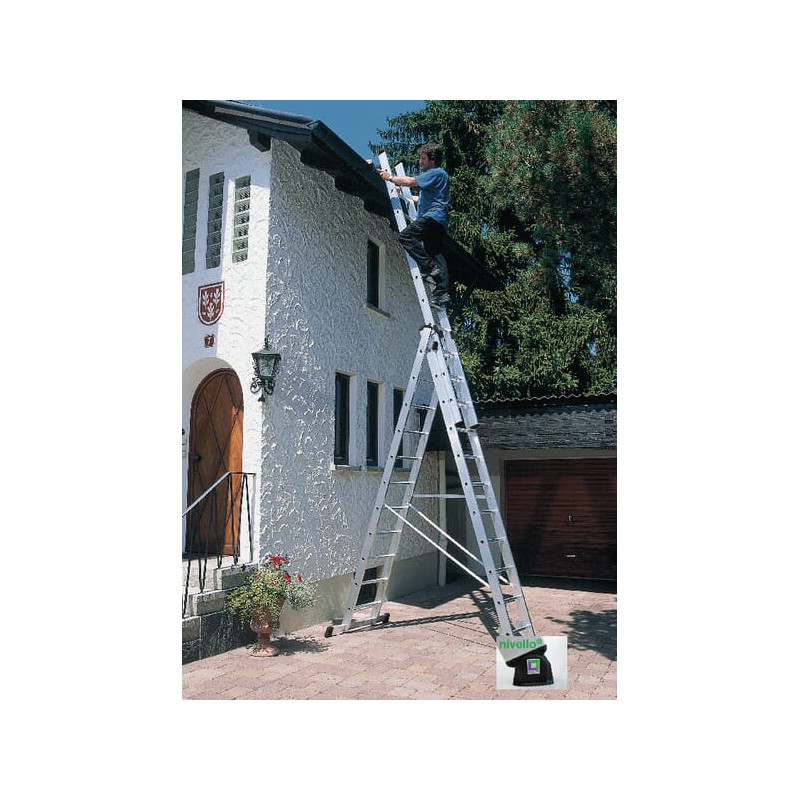 Dalies numeris 11109GST EAN4031405111097 Vnt./vnt. Gamintojas: Munk Laiptelių skaičius: 33 Elementų skaičius: 3 Sandėliavimo ilgis: 3,34 m Išskleistas ilgis: 7,83 m Stovėjimo aukštis: 8,9 m Laiptelio aukštis: 85 mm Laiptelio plotis: 25 mm Maksimali apkrova: 150 kg Su stabilizatoriumi: Taip Plotis: 49 cm Medžiaga: aliuminis Svoris: 26 kg _x000D_