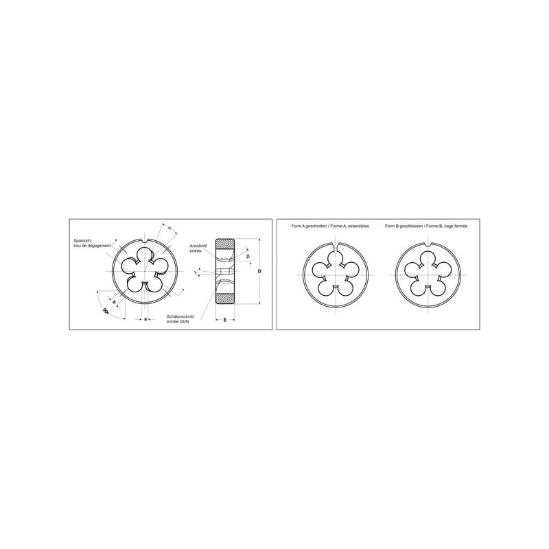 Dalies numerisTA185C516 EAN4022835234166 Vnt./vnt. GamintojasVölkel Išsami informacija Apskriti skaldomieji štampai Taikymo sritis Bendram naudojimui Neabrazyvinė medžiaga iki 800 N/mm² Nelegiruotas ir mažai legiruotas plienas Techninė informacija - UNC Protektorius Sriegio tipas UNC Sriegio skersmuo 5/16 colio Ritės colyje 18 Sriegio kryptis Dešinė Modelis Apvalus D Išorinis skersmuo 25 mm E Aukštis 9 mm Medžiaga Plienas HSS DIN standartas 223 Sriegis ANSI standartas B1.1 Svoris 22 g