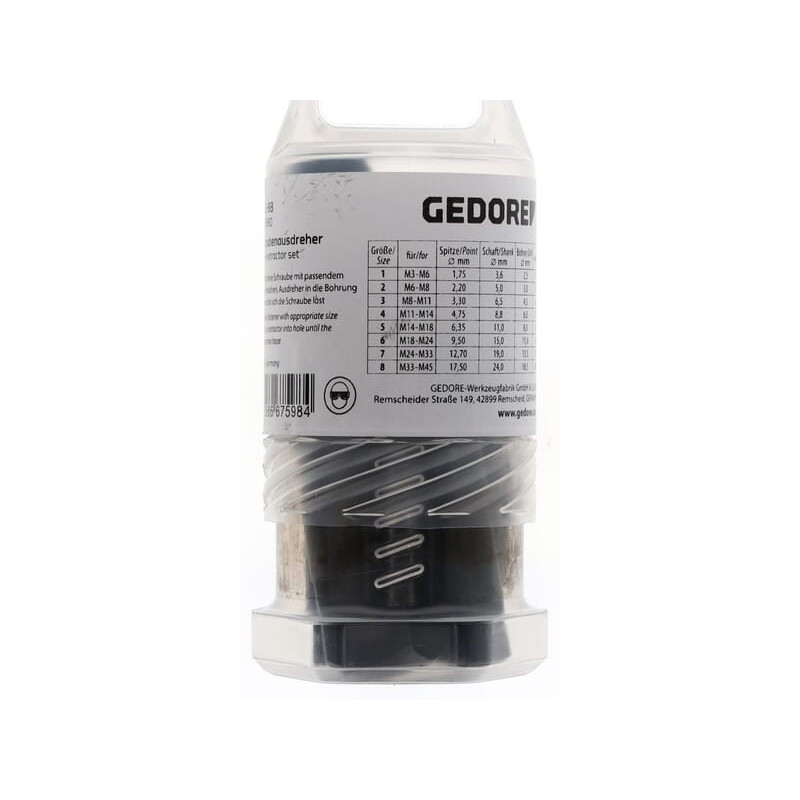 Dalies numerisHG855188 EAN4010886675984 Vnt./vnt. GamintojasGedore Taikymo sritis: Nulūžusiems varžtams, varžtams ir srieginiams strypams ištraukti. Savybės: Pagaminta iš chromo vanadžio plieno, 35 HRC. Galima naudoti kartu su rūdžių šalinimo priemone. Visada rinkitės didžiausią įmanomą atsuktuvą. Maks. sriegio skersmuo: M45 Min. sriegio skersmuo: M3 Varžtų ištraukiklių skaičius: 8 Komponentų skaičius: 8 Pakuotės tipas: Plastikinė dėžutė. Svoris: 724 g Gamintojo prekės ID: 6759890 []