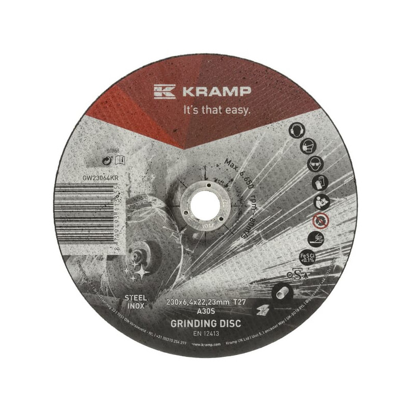 Dalies numerisGW23064KR EAN Vnt. vnt. Kiekis Apvalinimas10 GamintojasKramp Išsamus aprašymas Aukštos kokybės Kramp šlifavimo diskai, tinkami naudoti su plienu ir nerūdijančiu plienu, atitinka profesionalų reikalavimus. Skirti sudėtingiems ir sudėtingiems šlifavimo darbams metalo pramonėje ir amatininkystėje. Privalumai Ilgas tarnavimo laikas ir didelis efektyvumas Neužsipildo šlifuojant spalvotuosius metalus Su aštriais silicio karbido grūdeliais Produkto informacija Taikymas: plienas ir nerūdijantis plienas Rankinėms mašinoms Šlifavimo diskas su įgilintu centru Su unikalia grūdelių ir rišiklio sistema Disko skersmuo 230 mm Disko tvirtinimo angos skersmuo 22,2 mm Storis 6,4 mm Skirta medžiagai Plienas Nerūdijantis plienas Forma Pakeltas Formos kodas T27 Parduodamo vieneto kiekis 1 vnt. []