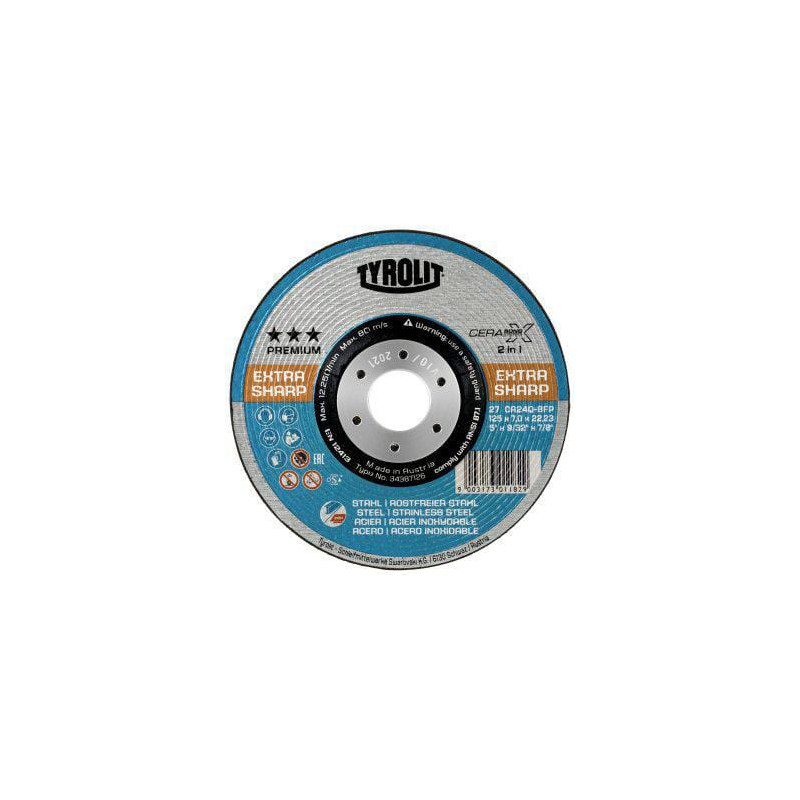 Dalies numeris 34401850 EAN9003173013014 Vnt./vnt. Gamintojas Tyrolit Disko skersmuo 178 mm Disko tvirtinimo angos skersmuo 22,23 mm Storis 7 mm Sukurta medžiagai Plienas Formos kodas 27 Grūdėtumo kodas 24 Darbinė medžiaga Plienas Maks. sukimosi greitis 72 m/s