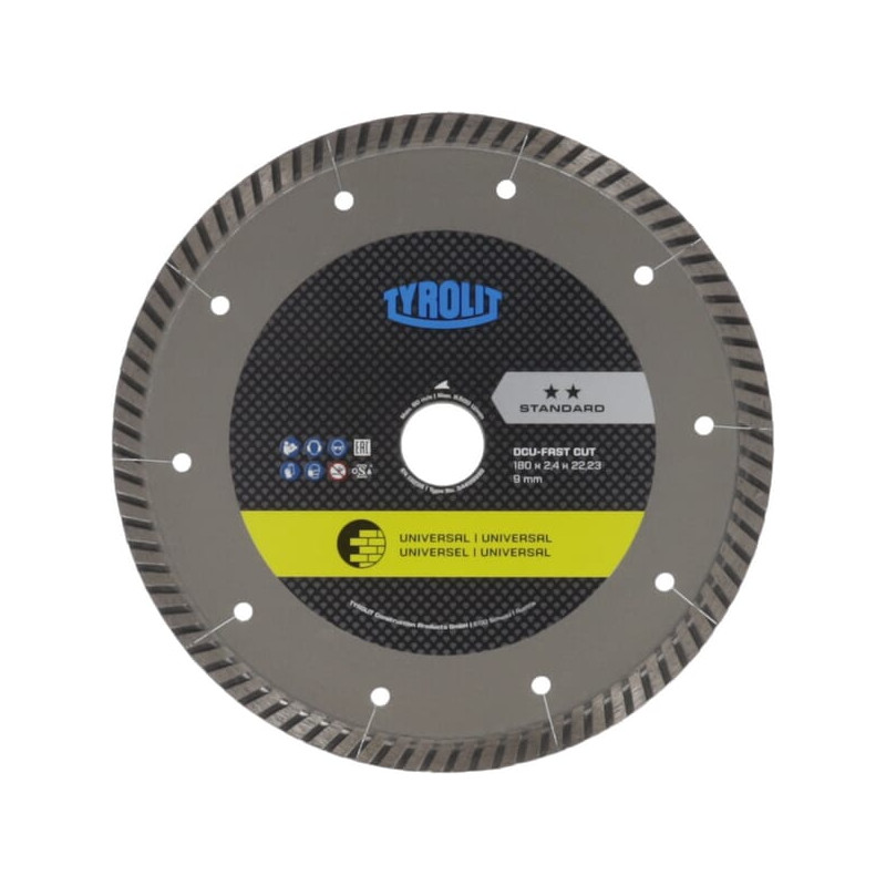 Dalies numeris 34499992 EAN9003173103142 Vnt./vnt. Prekės ženklas Tyrolit Išsamus aprašymas Tyrolit standartiniai DCU sausojo pjovimo pjūklai universalioms statybinėms medžiagoms Produkto informacija Naudoti su: universaliomis statybinėmis medžiagomis, tokiomis kaip betonas, plytos, natūralus akmuo ir kt. Disko skersmuo 180 mm Disko tvirtinimo angos skersmuo 22,23 mm Storis 2,4 mm Skirta medžiagoms Betonas Plytos Akmuo Forma Diskas []