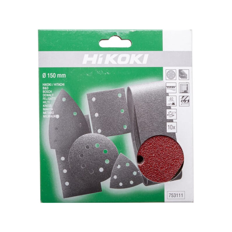 Dalies numeris 753111 EAN8717472811202 Vieneto pakuotė Gamintojas HiKOKI Disko skersmuo 150 mm Grūdėtumo kodas 40 Parduodamo vieneto turinys 10 vnt.