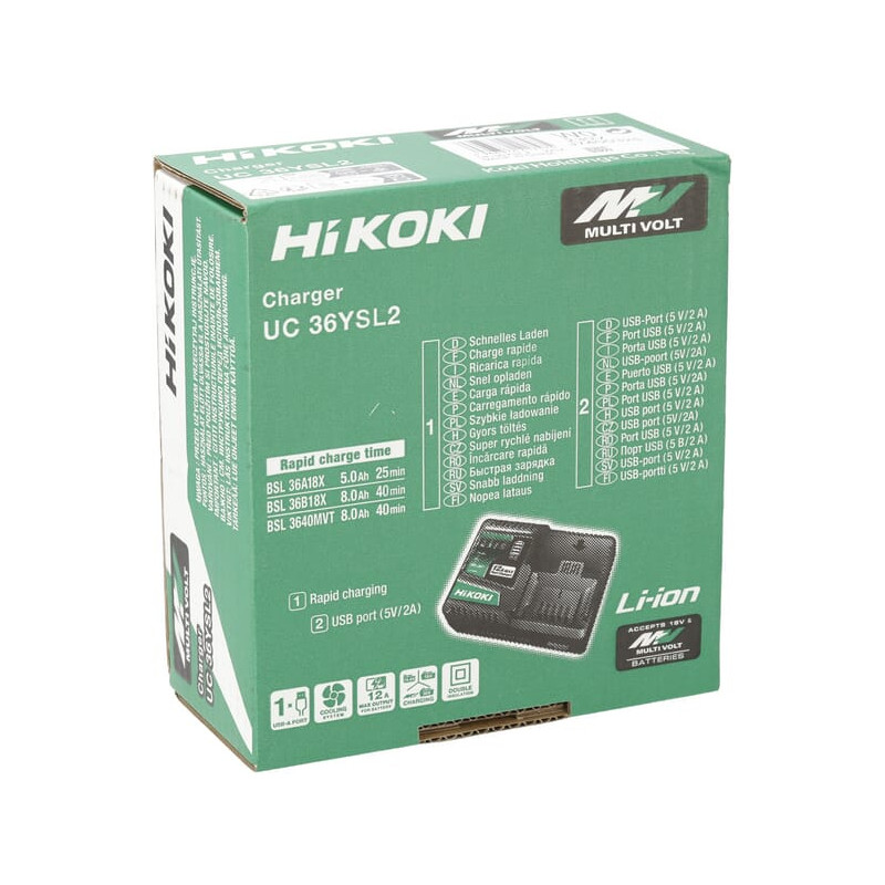 Dalies numerisUC36YSL2W0Z EAN4966376417575 VienetasKiekvienas Prekės ženklasHiKOKI Išsamus aprašymas„Hikoki“ akumuliatorių įkrovikliai, skirti 14 V, 18 V ir 36 V įtampai, turi integruotą išmaniąją aušinimo sistemą su ventiliatoriais. Įkraunant ličio jonų akumuliatorių, tarp akumuliatoriaus elementų cirkuliuoja vėsus oras. Elementai išlieka vėsūs, todėl įkroviklis gali maksimaliai įkrauti akumuliatorių, jo nepažeisdamas.
