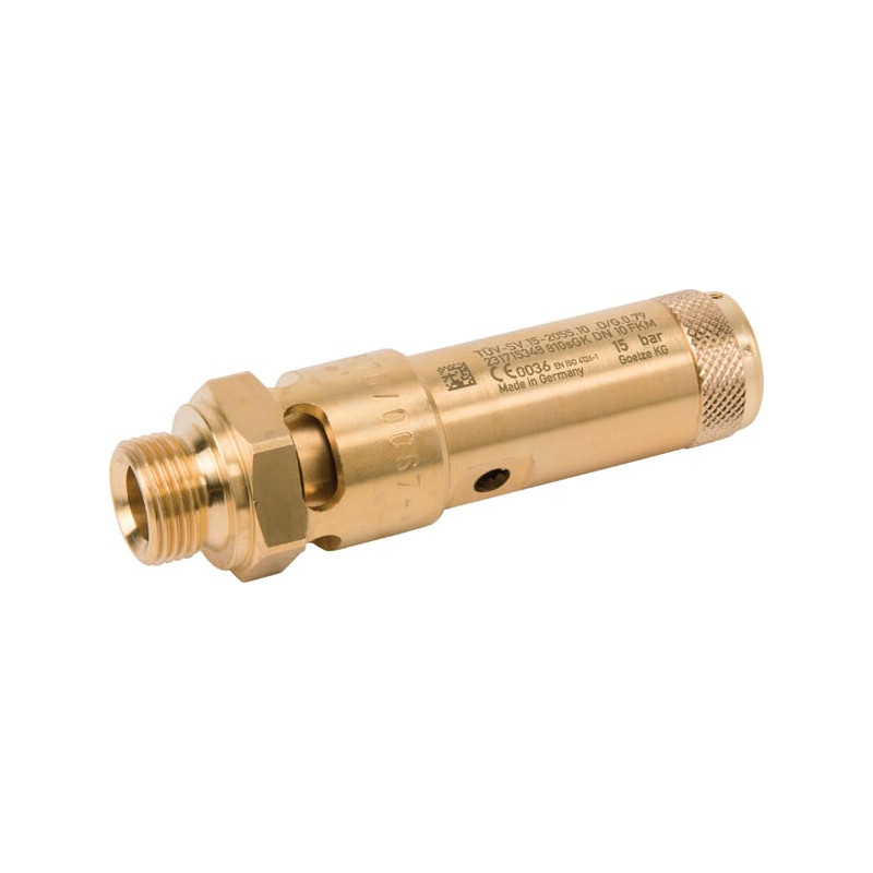 Produkto informacijaApsauginis vožtuvas su fiksuotu nustatymuCE patvirtintas: EN 10204 2.2 (Apsauginius vožtuvus su aukštesniu CE sertifikatu galima užsisakyti specialiai) Pagal pageidavimą galima užsisakyti bet kokį norimą slėgį nuo 0,3 iki 47 barųSuslėgtam orui arba neutralioms dujomsKorpusas: žalvarisVidinė dalis: žalvarisSuspaudimo spyruoklė: nerūdijantis plienasSandarikliai: mažiau nei 2,4 baro: silikonasSandarikliai: nuo 2,4 baro: fluoro gumaTemperatūros diapazonas: nuo -10 °C iki +180 °C