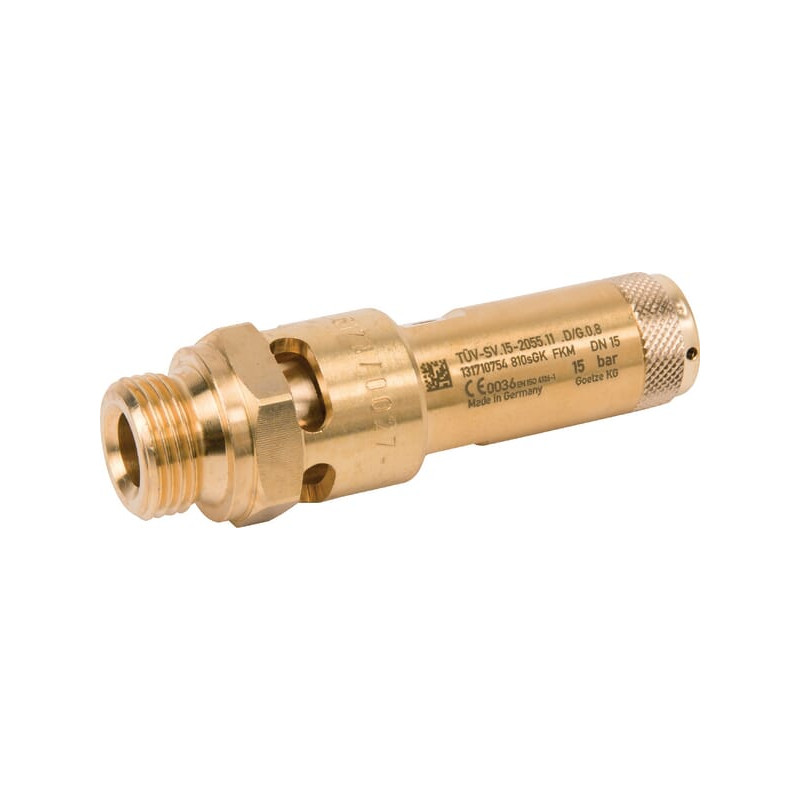Produkto informacijaApsauginis vožtuvas su fiksuotu nustatymuCE patvirtintas: EN 10204 2.2 (Apsauginius vožtuvus su aukštesniu CE sertifikatu galima užsisakyti specialiai) Pagal pageidavimą galima užsisakyti bet kokį pageidaujamą slėgį nuo 0,3 iki 47 barųSuslėgtam orui arba neutralioms dujomsKorpusas: ŽalvarisVidinė dalis: ŽalvarisSuspaudimo spyruoklė: Nerūdijantis plienasSandarikliai: Mažiau nei 2,4 baro: SilikonasSandarikliai: Nuo 2,4 baro: Fluoro gumaTemperatūros diapazonas: -10 °C iki +180 °C