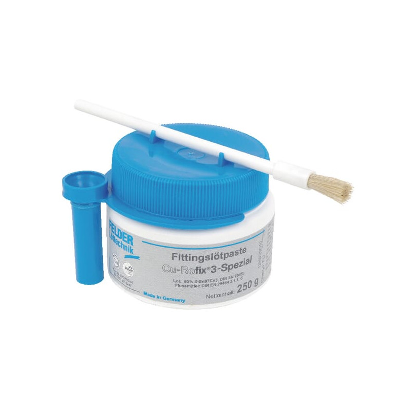 SavybėsCu-Rofix®3-Special jungiamųjų detalių litavimo pasta DIN EN 29453, S-Sn97Cu3, DIN EN 29454.1, 3.1.1.C (F-SW 21)Metalo kiekis ne mažesnis kaip 60 %DVGW sertifikatas: DV-0101 AT 2247 (FI058)