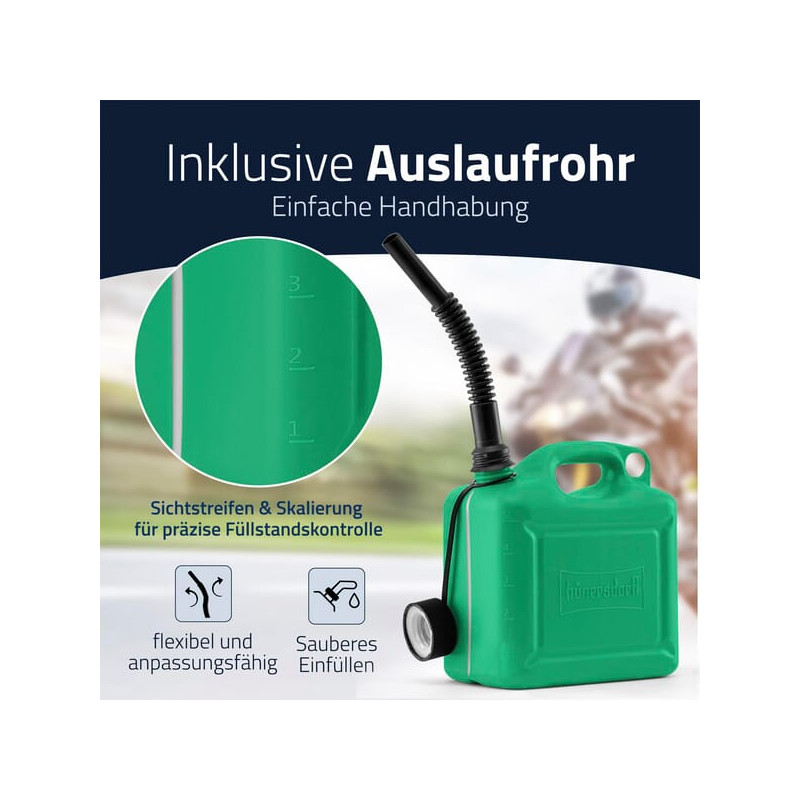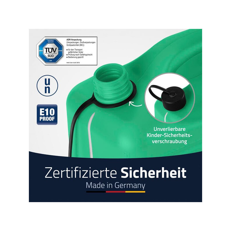 Produkto informacijaTÜV patikrinta gamybaTinka etanolio kurui E10Integruota peržiūros juostelė su reljefine skale leidžia tiksliai ir lengvai nuskaityti užpildymo lygį - Įskaitant snapelį ir nenuimamą vaikų saugos užsukamąjį dangtelį