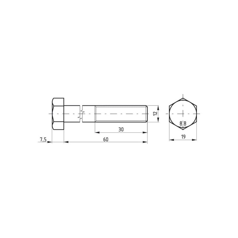 Šešiakampis varžtas DIN931 M12x60 plienas 8.8 Kramp 02101206088