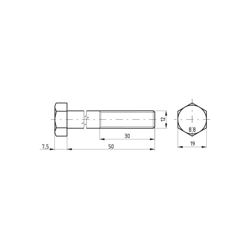 Išsamus aprašymasŠešiakampis varžtas su iš dalies sriegiuotu sriegiu, ilgis matuojamas žemiau galvutės.