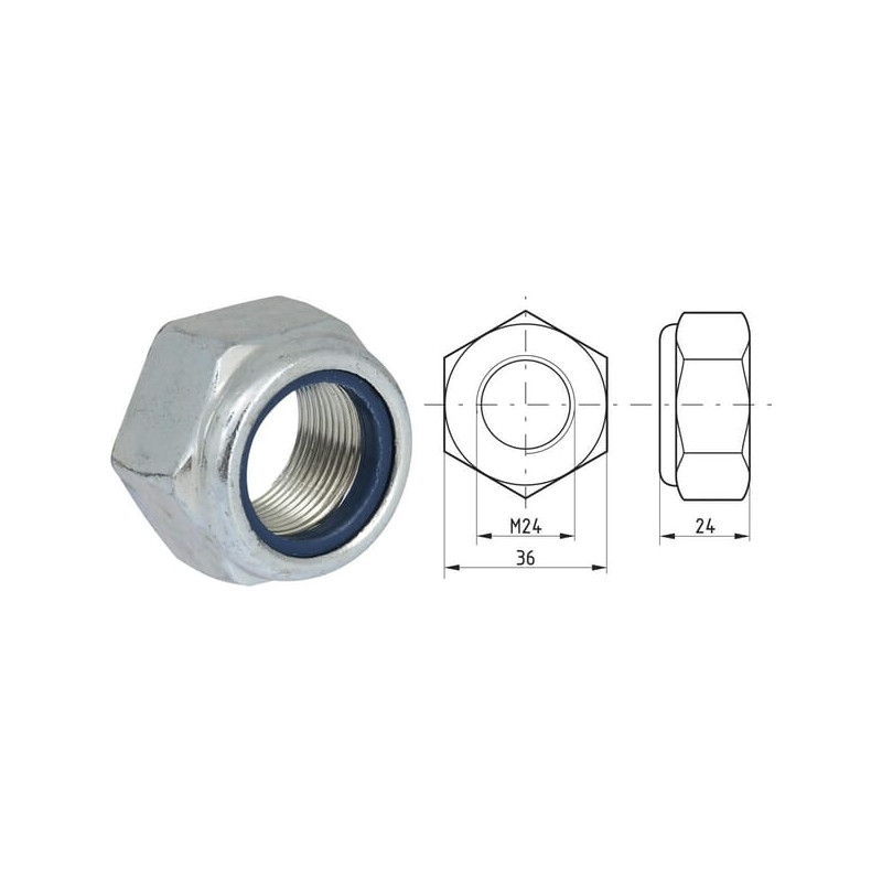 Šešiakampė fiksavimo veržlė DIN985 M24x2.00, cinkuota plienas |8| Kramp 985242