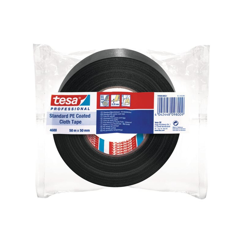 Juosta, audinio, standartinė, su PE danga, juoda, 50 m x 50 mm, TesaBAND® T046880002900