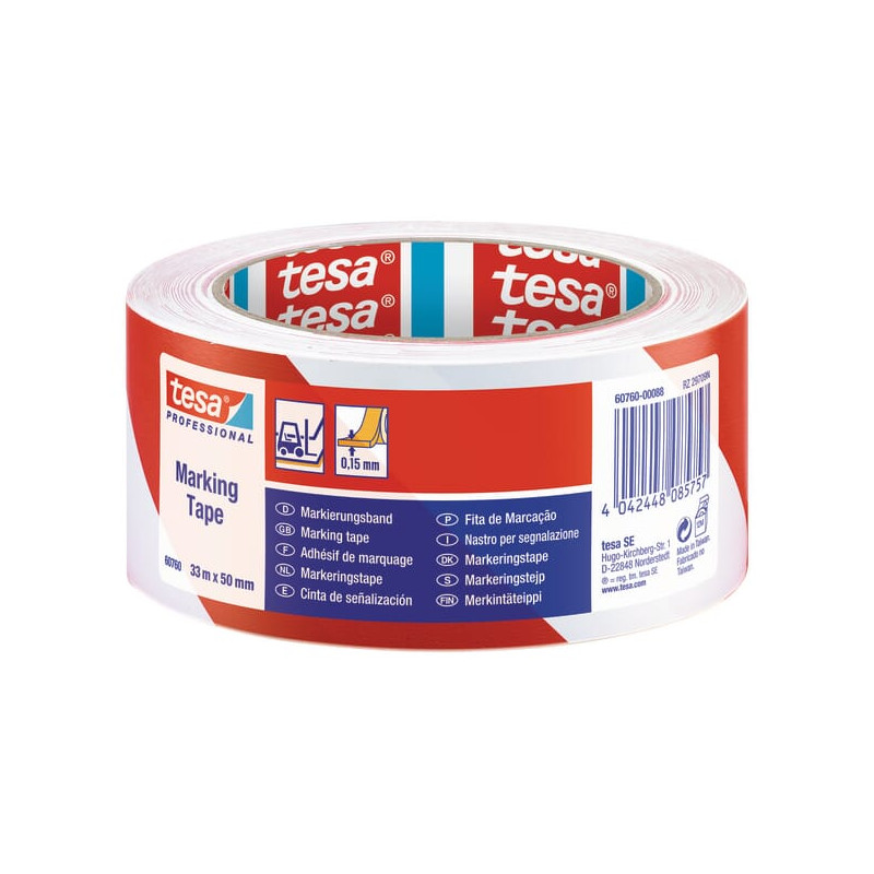Juosta, įspėjamoji, grindų žymėjimo, raudona/balta, 33 m x 50 mm Tesa® T607600008815