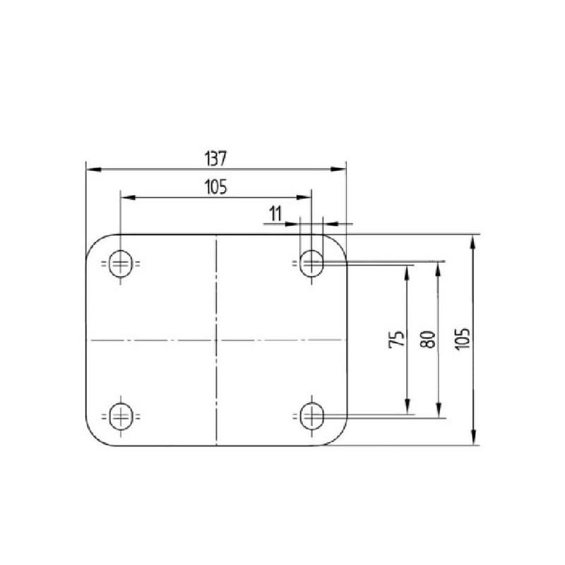 Tvirtinimo skylių atstumas – šoninis ilgis 105–105 mm
