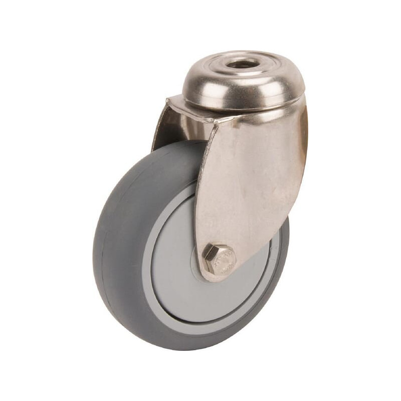 Pasukamas ratukas, guminis ratas: Ø75x25 mm, nerūdijančio plieno, vienos varžto skylė. Apkrova: 75 kg, „Tente“ 7470PJC075P3011.