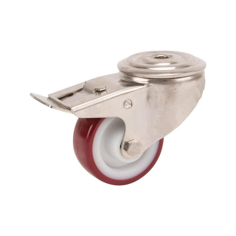Pasukamas ratukas, poliuretano ratas: Ø80x32mm, su stabdžiu, nerūdijančio plieno, viena varžto skylė. Apkrova: 100kg, Tente 8477