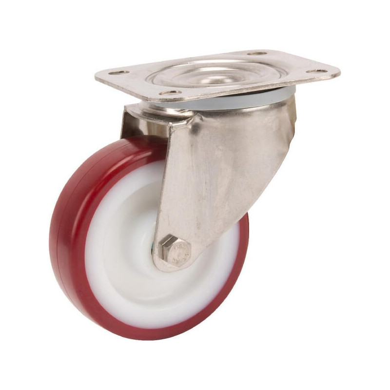 Pasukamas ratukas, poliuretano ratas: Ø100x32mm, nerūdijančio plieno plokštės tvirtinimas: 105x85mm, apkrova: 150kg, Tente 8470U