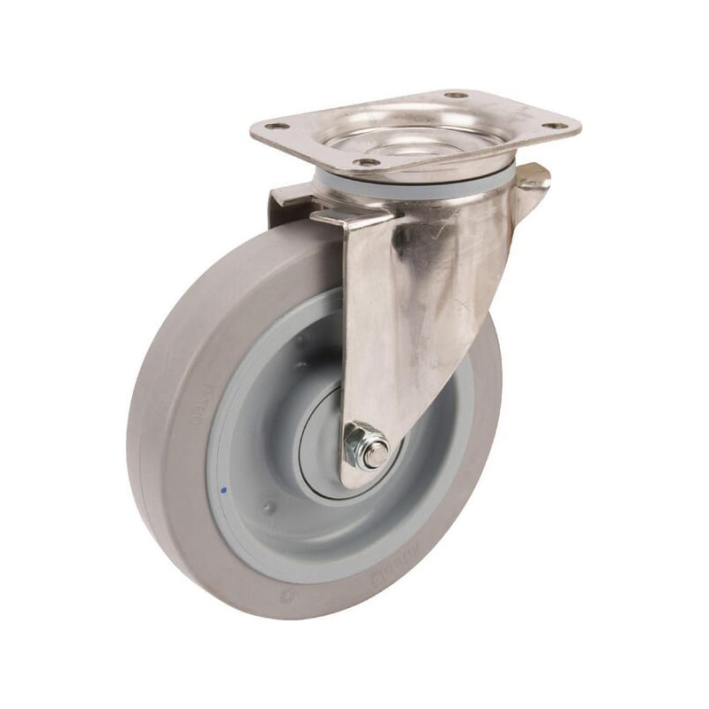 Pasukamas ratukas, guminis ratas: Ø200x46mm, nerūdijančio plieno plokštės tvirtinimas: 137x105mm. Apkrova: 400kg, Tente 8470UFC2