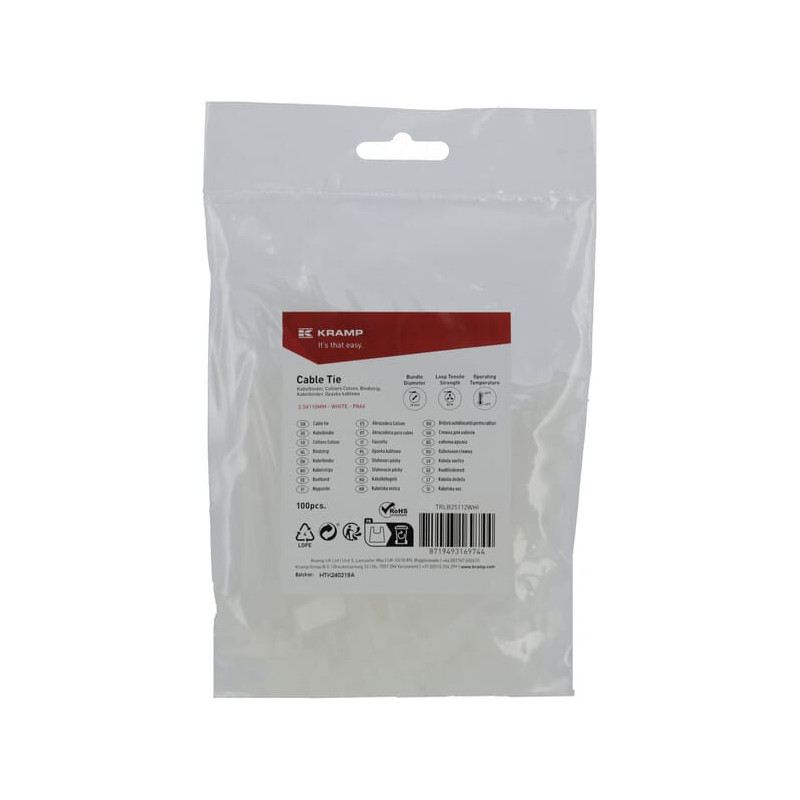 Kabelinė juostelė + etiketė 2,5x110 mm, balta, 100 vnt. TRLB25112WHI