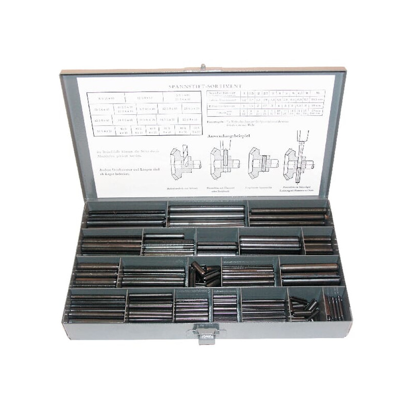 Sudėtyje yraMetaliniame dėkle Pridedami kaiščiai: 50x 3x22, 50x 3x40, 40x 4x16, 40x 4x22, 40x 4x30, 40x 4x40, 40x 4x50, 24x 5x30, 24x 5x50, 24x 5x60, 30x 6x16, 10x 6x40, 10x 6x50, 20x 6x60, 10x 6x80 5x 7x80, 12x 8x40, 12x 8x55 12x 8x60, 12x 8x80 6x 10x40, 6x 10x80