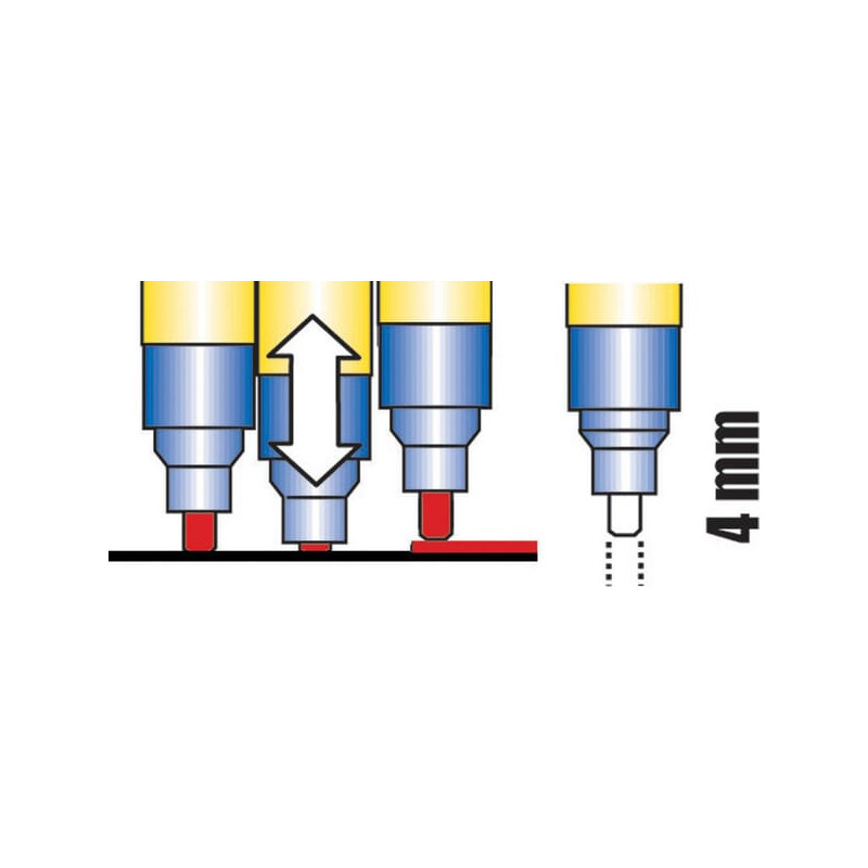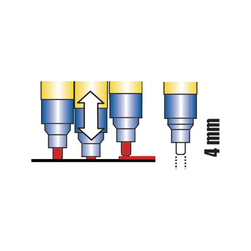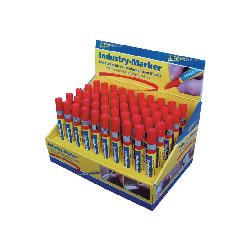 Dalies numerisHG0488 EAN4260036580488 VienetasKiekvienas GamintojasBleispitz Išsami informacijaLabai neskaidrus ir atsparus vandeniuiŽymėti tamsius ir šviesius paviršiusGreitai džiūstantys dažai Taikymo sritisLabai neskaidriems žymėjimams ant beveik visų medžiagų, tokių kaip metalas, stiklas, plastikas, akmuo, kartonas, plytelės ir mediena SavybėsSmailė gali būti naudojama iš abiejų pusiųRaudonas galiukasLinijos storis: 4 mmTalpa: 8,0 ml raudonų pramoninių dažų