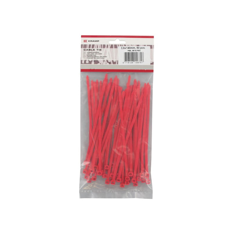 Kabelinė raištelis 3,6x140 mm, raudonas, poliamidas, maks. Ø 33 mm, 50 vnt. pakuotė, Kramp TRBL36140RED