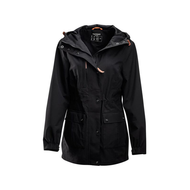 Produkto informacijaSu aukšta apykakle ir gobtuvu Dvi kišenės Su reguliuojamu juosmeniu Atsparus vandeniui ir vėjui Visiškai klijuotos siūlės Apvalinta nugaroje su plyšiu Su tinkliniu vidiniu pamušalu