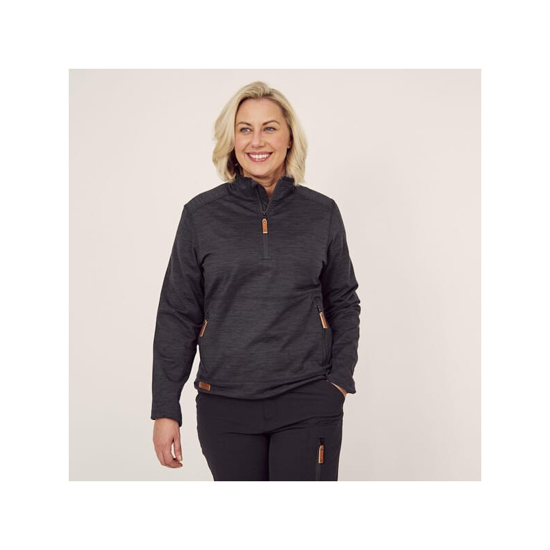 Moteriški flisiniai marškinėliai su užtrauktuku 1/2, tamsiai pilki, L KW5011101811054