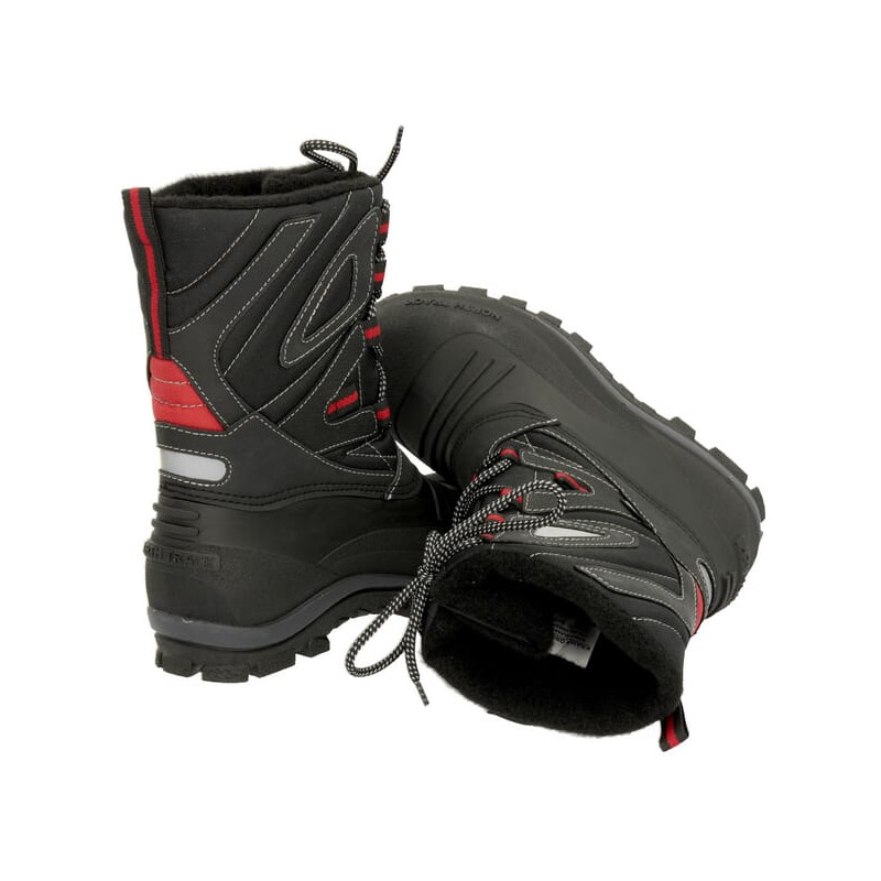 SavybėsVandeniui atsparus kaliušas iš „Tefaprene®“ 30 % lengvesnis nei PVC Puikus lankstumas ir komfortas Puikus sukibimas su šlapiais ir apledėjusiais paviršiais Atsparumas šalčiui iki -30°C Vandeniui atsparus viršutinis tekstilės sluoksnis Nugarinėje pusėje esanti kilpa lengvai apsiauti Vidinis sintetinės vilnos pamušalas geresnei šalčio izoliacijai 3M atšvaitinė juostelė nugarinėje pusėje Kiekviena pora kartoninėje dėžutėje