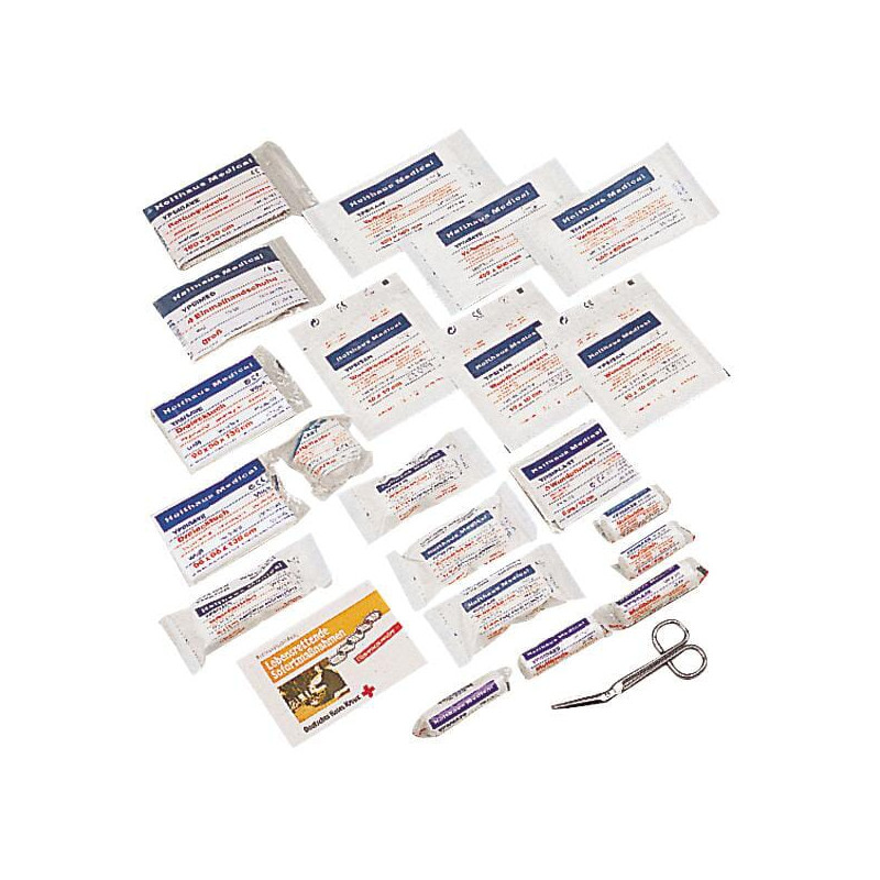 Produkto informacija5 kampų pirmosios pagalbos krepšys, pagamintas iš nailono su užtrauktuku Apvyniotas apsaugine folija Papildomas segtukas ir lipdukas su galiojimo data ir vieta, kur užrašyti krepšio laikymo vietą