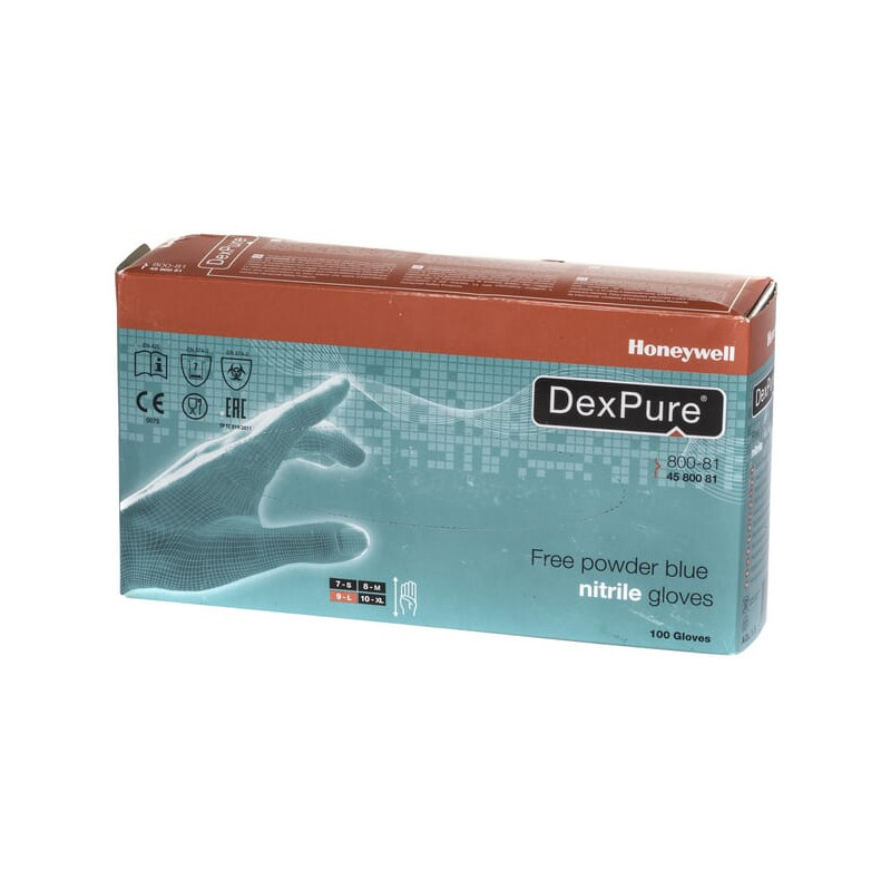 Honeywell DexPure vienkartinės mėlynos darbo pirštinės be pudros, 24 cm ilgio, 10/XL dydis, 4580081XL