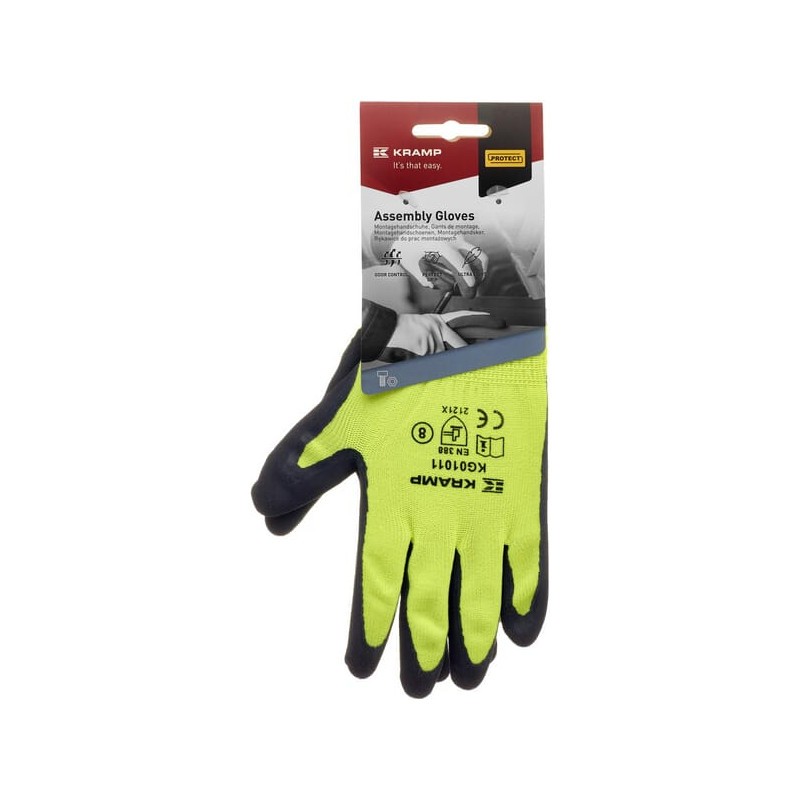 Išsamus aprašymas Šios „Kramp Protect“ surinkimo pirštinės turi patogią latekso dangą ant delno ir pirštų galiukų, užtikrinančią puikų sukibimą tiek sausomis, tiek drėgnomis sąlygomis. Besiūlės megztos pirštinės su elastingu megztu rankogaliu, užtikrinančiu išskirtinį judėjimo laisvumą ir kvėpavimą. Rankogalis taip pat suteikia maksimalią rankos ir riešo apsaugą. Plaunamos, kad būtų patvarios.